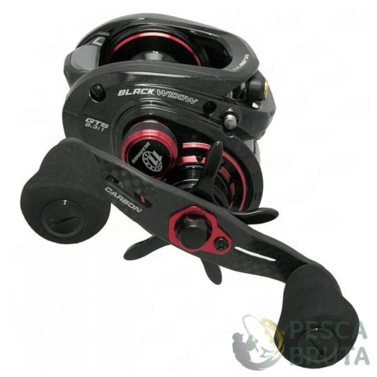 A nova carretilha Marine Sports Black Widow GTS possui chassi em alumínio e laterais em carbono, freio centrifugo com regulagem externa, manivela com infinito anti-reverso, carretel de alumínio, sistema de freio com 3 disco de carbono + 2 de aço inox e 1 disco de duralumínio, manivela aliviada de carbono, guia de linha revestido em titânio, freio do botão do arremesso com regulagem ponto a ponto.